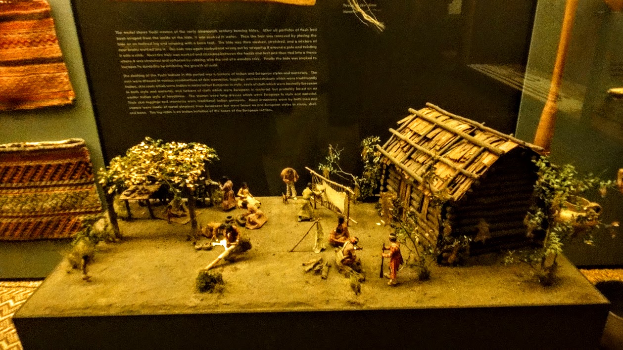 अमेरिकन इंडियन संस्कृतीचे संग्रह मोठ्या प्रमाणात असणे या संग्रहालयात साहजिकच होते. "नॅशनल म्युझियम ऑफ अमेरिकन इंडियन" बघून झाले होते. "आता इथे काय अधिक पहायला मिळणार ?" असा प्रश्न मनात येणे साहजिक होते. पण त्या विभागात... किंबहुना विभागसंकुलात... शिरल्यावर ती शंका केव्हा कशी उडून गेली हे ध्यानात आले नाही. अजस्त्र अमेरिकन द्वीखंडांमध्ये काही सहस्र वर्षांच्या कालखंडात जन्मलेल्या आणि बहरलेल्या असंख्य प्राचीन अमेरिकन संस्कृतींचा खजिना पाहिल्यावर, त्या संस्कृती त्यांच्या कालखंडासाठी प्रगत होत्या याबद्दल मनात शंकाच राहत नाही. मात्र, तेथील लोक युरोपातून येणार्या नवीन आक्रमकांच्या मानाने फारच कमी भांडखोर असल्याने त्यांना नवनवीन, जास्त विध्वंसकारी शस्त्रास्त्रे निर्माण करण्याची गरज पडली नाही. त्यामुळे सोने आणि चांदीचा अपरिमित साठा करण्याइतके धातुशास्त्र विकसित झाले असूनही त्यांची शस्त्रे मुख्यतः लाकडी दंडुक्यांच्या पुढे क्वचितच गेली. संस्कृतीच्या इतर विकसित आनंददायी पैलूंच्या मानाने त्यांची शस्त्रे अतिशय कमकुवत होती. अर्थातच, आक्रमकांच्या धातूंच्या तलवारी आणि स्फोटकांचा उपयोग असलेल्या बंदुकांच्या पुढे त्यांचा टिकाव लागला नाही यात आश्चर्य नाही... आणि त्याचा त्या संस्कृतींवर काय परिणाम झाला हा इतिहास, आक्रमकांना मानणे कितीही कठीण असला तरी, आतापर्यंत सर्वमान्य झाला आहेच. या पार्श्वभूमीमुळे, अमेरिकन इंडियन संस्कृतींच्या दालनांतून फिरताना, आश्चर्य-आनंद-दु:ख यांची मिश्र भावना मनात सतत एक विचित्र वादळ निर्माण करत राहते.