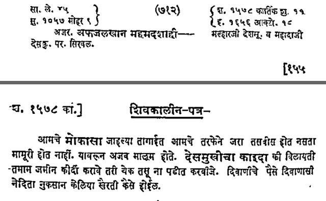 पाठविली.त्यात एक फर्मान कान्होजी जेधेंना आले ते असे.