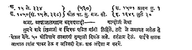 "आपला जमाव घेऊन सिताबीने यावे,खर्चाची तरतूद स्थळी केली जाईल,आम्ही तायाघाट ओलांडून गेलो आहोत"