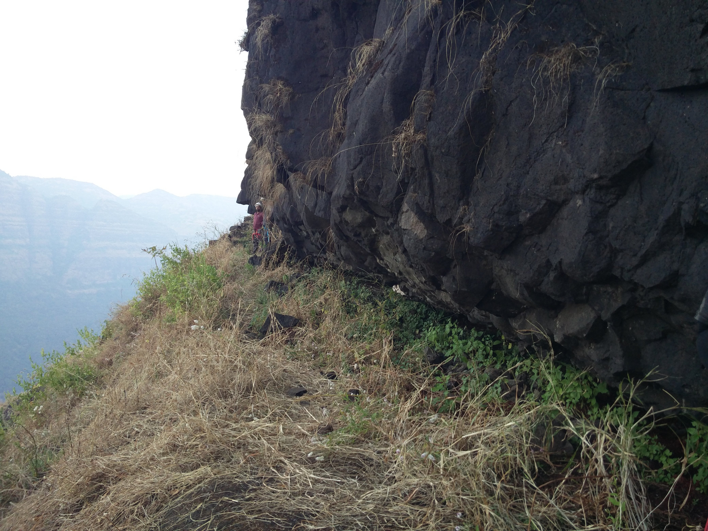 बोराट्याच्या नाळेतील लिंगाण्याच्या चढाईमार्गाशी पायथ्याशी जाणारा थरारक रॉक पॅच