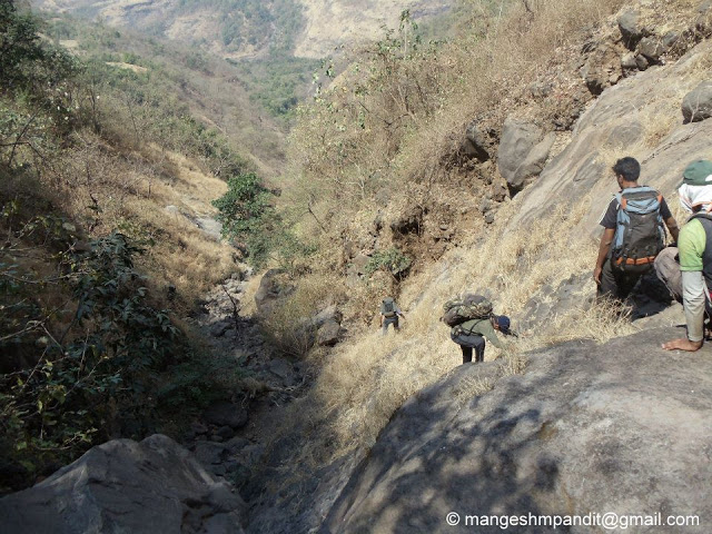 प्रचंड मोठ्या पथ्थरांमुळे बोराट्याच्या नाळेची उतराई देखील अवघड आहे.