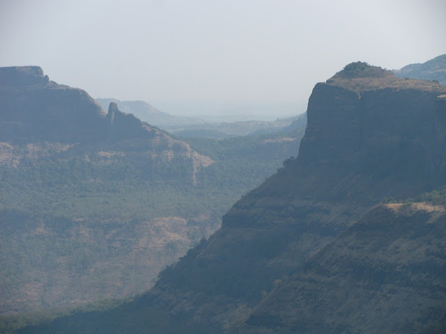 कैलासनाथाचे दर्शन घेउन आम्ही रामभाउंकडे मस्त तांदळाची भाकरी, पिठले, ठेचा यांचे जेवण केले व साधारण सव्वा वाजतो कोकणातील कोंदिवडे-कर्जत च्या बाजुने निघालो. वाटेत एक हुप्प्यांची जोडी पाहिली. काही वेळातच सह्याद्रीच्या मुख्य धारेपाशी आलो. इथून खूप खोलवर ३५०० फूट खाली कोकण दिसत होते. एका तीव्र उताराच्या अरूंद पायवाटेने निघालो. अनंत वळणे घेत, घसरत घसरत पाणी संपवत आम्ही उतरू लागलो.