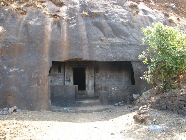 कितीही उतरले तरीही पायथा अजून बराच खाली होता.शेवटी कसेबसे आम्ही कोंढाणा लेण्यांपाशी पोहोचलो. डिहायड्रेशन मुळे कुणीच त्यांचे सौंदर्य टीपू शकले नाही. तिथून तसेच खाली उतरत इमू फार्मपाशी आलो. तिथे पाणी मिळाले. १५/२० मिनिटे तिथेच दम काढून कोंढाणे गावात आलो. मनरंजन आता दिमाखात उंच उभा होता.