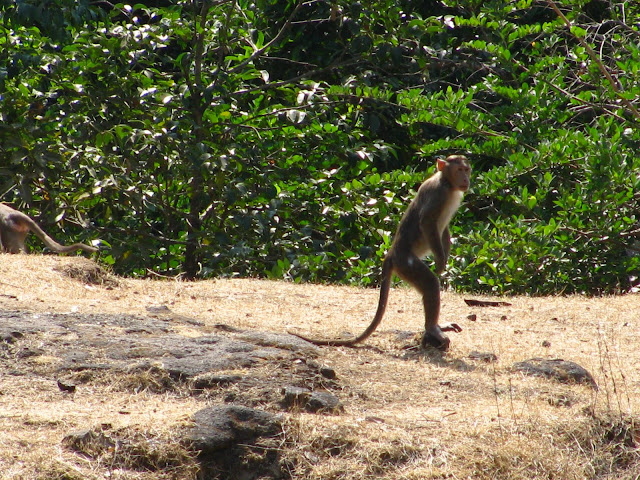 खोपीत थोडी विश्रांती घेतली व थोड्या वेळातच फटफटले. आता जवळूनच बिबट्यांचे हूंकार ऐकू आले. पण भीती अशी वाटली नाही. ताजेतवाने होउन आम्ही श्रीवर्धन बालेकिल्ला पाहण्यास निघालो. व दोन बालेकिल्ल्यांच्या मध्ये असलेल्या भैरवनाथाच्या देवळापाशी आलो. तिथे काही मर्कट्लीला पाहिल्या.
