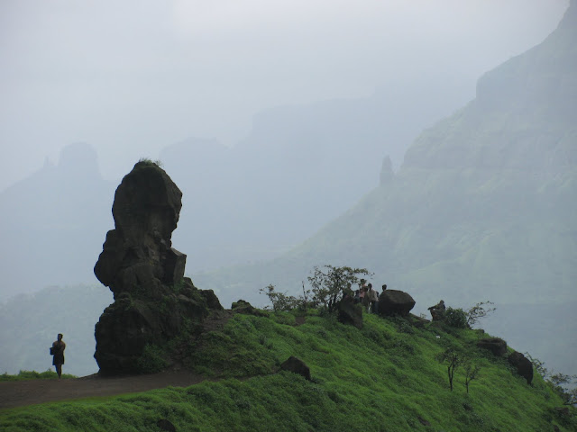 मागच्या रविवारी पुण्याहून सकाळी निघालो. पाउस नव्हताच. आळेफाट्याला पोहोचलो. तिथून डावीकडे वळून ओतूर गाठले. हवा हळूहळू कुंद बनत होती. सगळीकडे हिरवेगार दृश्य होते. आतापर्यंत दिसत असलेल्या टेकड्यांची जागा आता सह्याद्रीचे महाकाय पर्वत घेत होते. बहुतेक सर्वच हिरवा शालू पांघरून चेहर्‍यावर ढगांचा घुंघट ओढून बसले होते. मूळ राकट पुरुषी सौंदर्‍याचे आता हळूवार नाजूक स्त्रीत रूपंतर झाले होते.