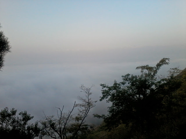 खाली ढगांचा समुद्र आणि सुदूर पीरपंजालमधले बर्फाच्छादित शिखर