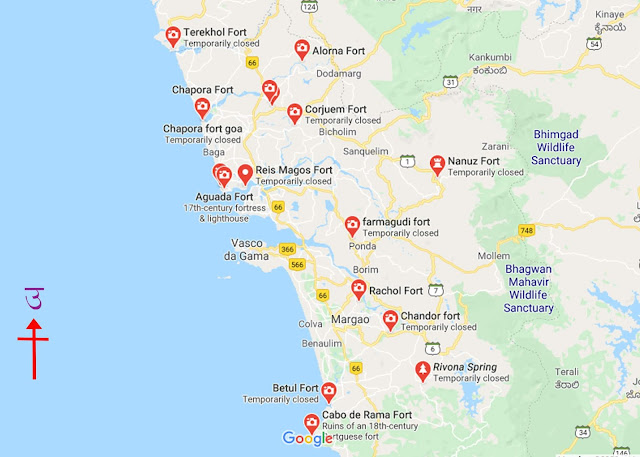 गोव्यातील सर्व किल्ल्यांचा एकत्रित नकाशा