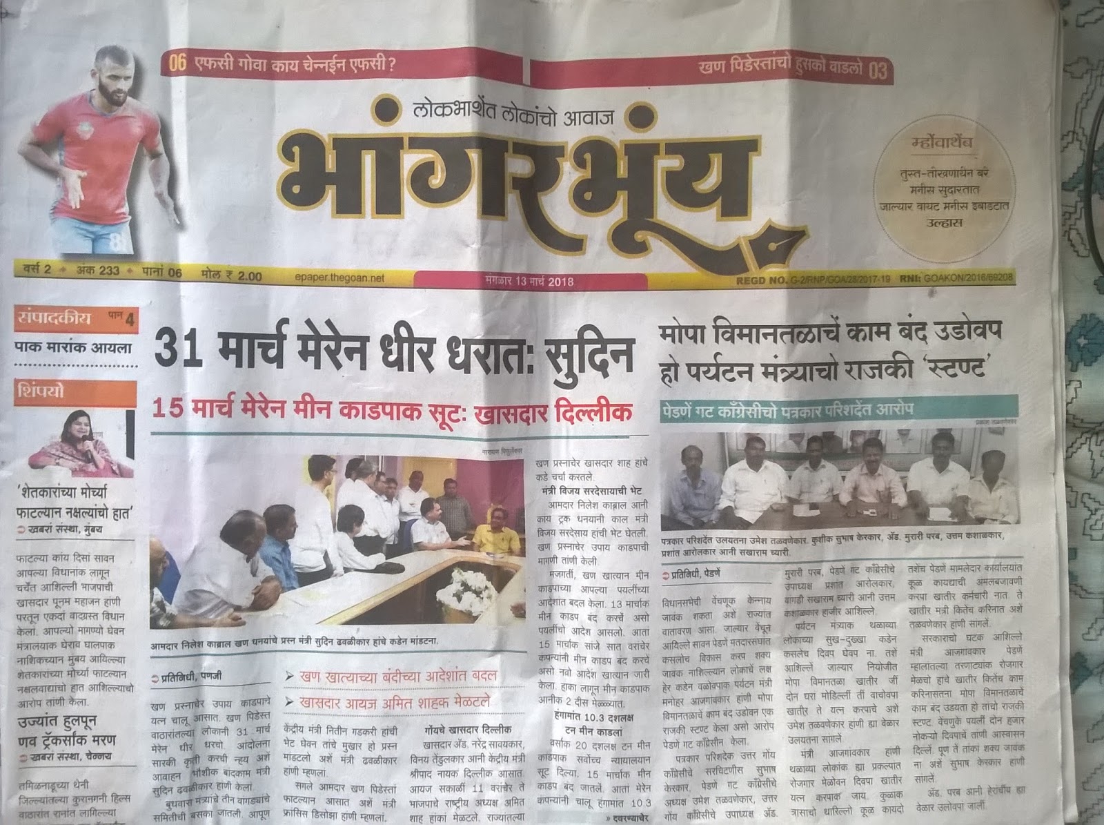 कामत हॅाटेल स्टॅापला उतरल्यावर मी हॅाटेल शोधायला निघालो. एक मोठी नगरपालिका इमारत, बाजूला मोठी बाग, बागेभोवती छान रस्ता,स्टेट बँक,कॅनरा बँक, बँक ओफ इंडिया, गोवा टुअरिझमचे ओफिस/हॅाटेल, मार्केट,पेट्रोल पंप्स,शाकाहारी तीनचार रेस्टारंट्स पाहून लगेच लक्षात आल हा भाग मध्यवर्ती आणि वर्दळीचा आहे. एका पेपरवाल्याकडे कोकणी पेपर 'भांगरभूंय' मिळाला.