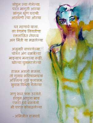 अभिजीत राजवाडे in जे न देखे रवी... 7 Jan 2012 - 8:13 pm (पुर्वप्रकाशित - जालरंग प्रकाशन! शब्दगाऽऽरवा २०११!) करुणकवितागझल प्रतिक्रिया सुंदर........ 7 Jan 2012 - 10:22 pm | प्रा.डॉ.दिलीप बिरुटे अजूनही बावरलेल्या चोरुन अंग बसलेल्या माझ्याच मनाच्या काही खोल्या घुसमटलेल्या. -दिलीप बिरुटे आभार!!! 8 Jan 2012 - 11:41 pm | अभिजीत राजवाडे आभार डॉ. साहेब.