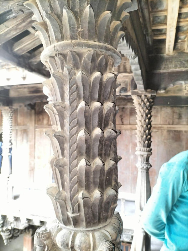 काष्ठशिल्पातील शेवटचे दार व काळ्या रंगाचे नक्षीदार लाकुड आहे ते आतुन पोकळ आहे, त्याकाळातील सजावटीसाठीचे लाकडी POP.
