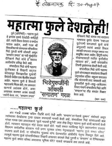 धमालराव आणि समीर यांच्याशी अगदी सहमत. बाकी 'संभाजी ब्रिगेड' किंवा त्यांच्या भाऊबंदांबद्दल आम्ही काय बोलावे? ज्या शंभूछत्रपतींनी हिंदू धर्मासाठी बलीदान केले त्यांच्याच नावाने चालणारी ही संघटना हिंदू धर्मच खोटा आहे म्हणते. यावरुनच यांची काय ती अक्कल कळते.