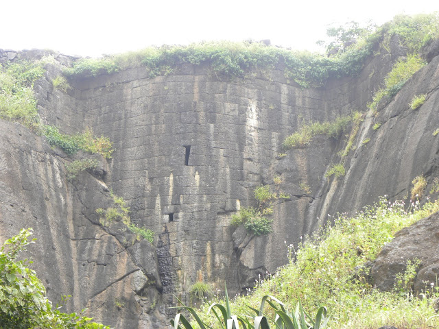 इमारतीतून मागच्या दरवाजाने बाहेर पडलो. बाहेर पडताच गवतातून भावाच्या पायावरून २ फूट लांबीचा साप वळवळत गेला. दचकून त्याने उडी मारल्याने २/३ दगड उडाले ते शेजारीच असलेल्या कातळावर पडले व अचानक पोकळ असल्यासार्खा आवाज आला. आम्ही दगडाने कातळ ठोकून बघितला थोड्याश्या भागात कातळ आतून पुर्णपणे पोकळ असल्यासारखा घुमणारा आवाज येत होता. अनपेक्षितपणे दिसलेल्या ह्या निसर्गानवलामुळे आम्ही अचंबित झालो. व गवतातूनच पुढे निघालो.