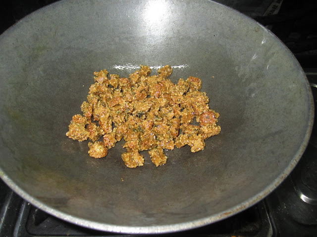 १ वाटी सान्डगे त्यात १ मोठा डाव तेलात तळुन घ्यावे. मन्द आनि थोडे हाय गॅस्वर आनि रन्ग ब्राउन होइपर्यन्त परतावे.