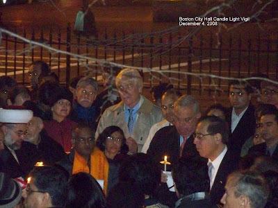 बॉस्टन सिटी हॉलच्या पायर्यांवर