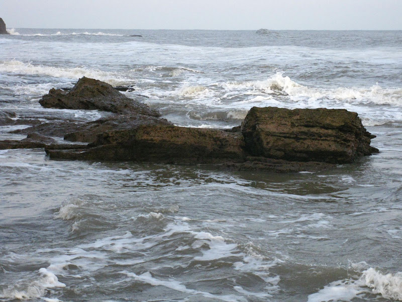 पहिल्यान्दी आम्ही गेलो गन्गेश्वर महादेव या ठिकाणी. येथे थोडेसे खाली उतरून गेले की शन्कराच्या पिन्डी आहेत. बाजूलाच आहे उफाळता सागर. भरतीच्या वेळेला तर ईथे जाताच येत नाही. आम्ही गेलो तेव्हा ओहोटी होती पण लाटा तरीही फेसाळत्याच होत्या. याचे कारण दीऊ मध्ये कुठेही गेले तरी किनार्यापासून थोडे आतमध्ये खडक आहेत. त्यामुळे सागर कायम फेसाळलेला असतो.