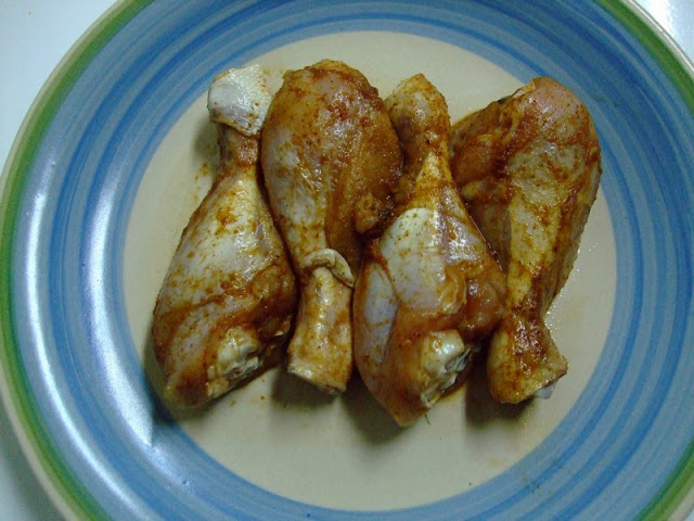 त्याला आल-लसुण पेस्ट,लाल तिखट लावुन परत १०-१५ मिनिटं मुरत ठेवाव.