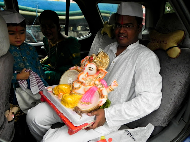 गाडीत विराजमान होउन आलेले बाप्पा...