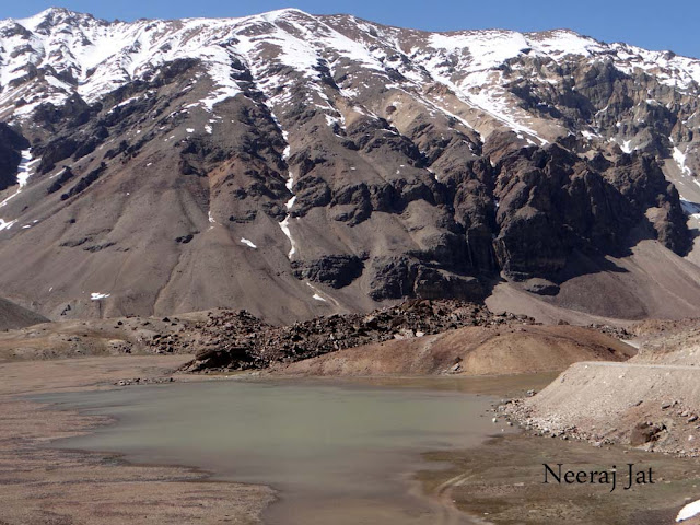 इथून सूरजताल १३ किलोमीटर आणि बारालाचा १६ किमी आहे. म्हणजे अजून १६ किमी वर चढायचे आहे. नाश्ता करून साडे सात वाजता बाहेर पडलो. आज ४७ किमी लांब सरचूला पोहोचायचे आहे. इथून निघतो नाही तोच चढाई सुरु झाली. रस्ता चांगला होता. पुढे गेल्यावर एक ओढा पार करावा लागला. ओढ्याला पाणी खूप होते. पण ओढा पसरट असल्याने पाण्याला धार नव्हती. पण पाणी इतके थंड होते कि आईच आठवली. थोडावेळ तर आपले पाय कुठाय ते शोधत होतो. इथे ट्रेकिंग करणारे ओढ्याबरोबर वर चढत होते. मला कळून चुकले कि ते चन्द्रताल ला चाललेत. तिथे पोहोचायला अजून भरपूर दिवस लागतील. रस्त्या मध्ये बर्फ तर इथूनच सुरु झालाय. चन्द्रताल पर्यंत तर बर्फातच चालायला लागणार.