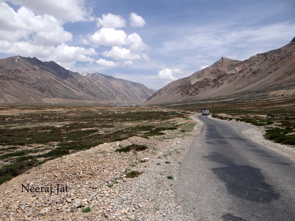 गाटा लूप सरचू पासून २४ किमी पुढे आहे तसेच २०० मीटर खाली. त्यामुळे उतार होता. तरी पण पावणे तीन तास लागले तिथे पोहोचायला. त्याच वेळेस दिल्ली हून लेह ला जाणारी बस पण निघाली होती. रस्त्यांनी इतके सुंदर नजारे पाहायला मिळत होते कि सारखे थांबायला लागायचे, फोटो काढण्यासाठी. तसं पाहायला गेलं तर पांग मध्ये पोहोचायला पाहिजे होतं. पण पोहोचू शकणार नव्हतो. त्यामुळे मध्येच तंबू ठोकायला लागणार हे पक्के होते. पांग मध्ये पोहोचणारच नाही तर घाई कशाला!! म्हणून मजेत रमत गमत निसर्गाने केलेली सौंदर्याची उधळण बघत चाललो होतो.