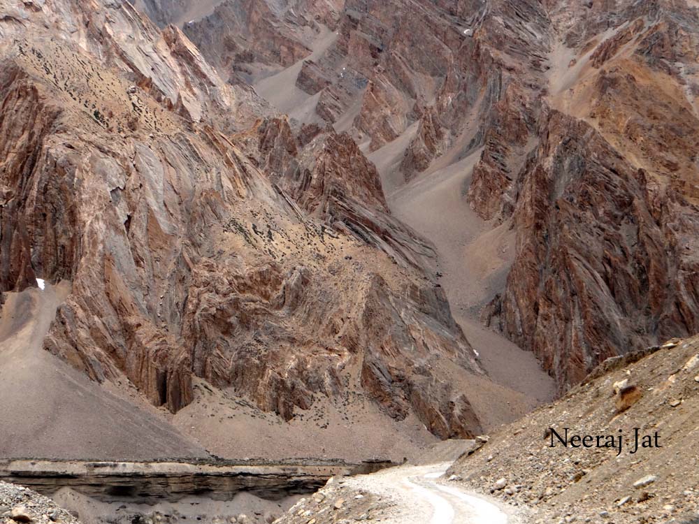 हा जो रस्ता हा लांबवर दिसतोय, तो रस्ता पुढे व्हिस्की ओढ्या पाशी उतरून पुढे वरती डोंगरावर चढून लाचुलुंग-ला घाटात गायब झालाय.