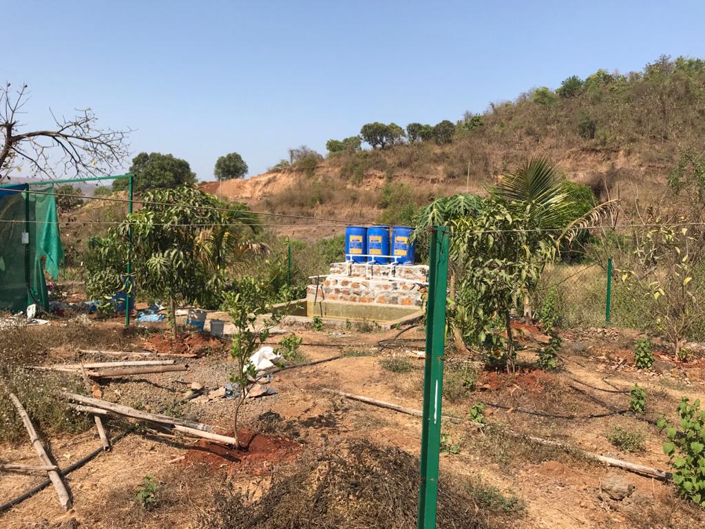 सुरुवातीच्या तीन वर्षांत ह्या जागेला काटेरी तारेचे कुंपण घालणे, बोअर वेल खोदणे, पाण्याची साठवणूक करण्यासाठी भूमिगत टाकी बांधणे, आवश्यक तिथे मातीची भर घालून व उंचवट्याच्या ठिकाणी JCB द्वारे खुदाई करून जमिनीची सपाटी करणे अशी कामे करून झाल्यावर मग दोन वर्षांपूर्वी ज्या झाडांना वाढीसाठी तुलनेने जास्त कालावधी लागतो अशी नारळ, फणस, आंबा, काजू, चिकू, आवळा लाल जाम, सफेद जाम, पेरू, लिंबू अशी झाडे लावली असून त्यांची वाढ आता छान झाली आहे, तर मागच्या जून महिन्यात पावसाळा सुरू होताना पपई, कडीपत्ता, वांगी, भेंडी, मिरची, दुधी भोपळा, टोमॅटो, कार्ली, मका, आलं आणि पुदिन्याची रोपे मोठया हौशीने ( आणि थोड्याश्या आज्ञानाने ) लावली होती. पण गेल्यावर्षी झालेल्या अतिवृष्टी मुळे त्यापैकी फक्त दोन पपईची झाडे, आठ कडीपत्ता व तीन वांग्याच्या रोपांनीच तग धरली आहे. पपई मस्त फळांनी लगडली आहे. तसेच डिसेंबर २०१९ मध्ये किसान प्रदर्शनातून आणलेली चंदनाची दोन, सिताफळाचे एक, केशर आंब्याचे एक आणि पेरूची दोन कलमे अजून बाल्यावस्थेत आहेत त्यांना पावसाळा सुरू झाला की जमिनीत लावणार आहे.